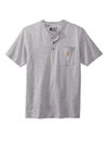 • Henley collar with three-button front